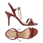 Sandalia femenina Arezzo en color rojo, con tacón medio fino que ofrece elegancia y comodidad. Su diseño de tiras con detalle de nudo aporta un toque moderno y femenino, ideal para destacar cualquier look. Perfecta para eventos, salidas nocturnas o para elevar outfits sencillos con un acento de color.