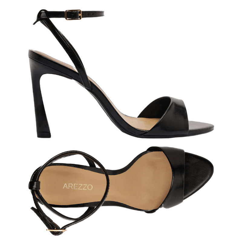 Sandalia femenina Arezzo en color negro, con tacón alto fino que estiliza la figura y aporta un look sofisticado. Su diseño con tira media brinda un ajuste elegante y minimalista, ideal para eventos formales, noches especiales o para elevar cualquier outfit con un toque clásico y atemporal.