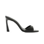 Mule femenina Arezzo en color negro, confeccionada en cuero, con tacón alto que estiliza la silueta y aporta elegancia. Su diseño abierto en la parte trasera con tira media ofrece un look moderno y sofisticado, ideal para eventos, salidas nocturnas o para elevar outfits formales con un toque contemporáneo.