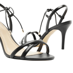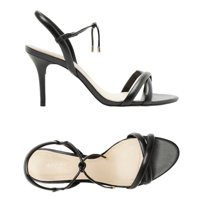 Sandalia femenina Arezzo en color negro, con tacón fino que aporta elegancia y estiliza la figura. Su diseño de tiras crea un look delicado y sofisticado, ideal para ocasiones especiales, eventos de noche o para elevar outfits formales. Un modelo clásico y atemporal que no puede faltar en el clóset.