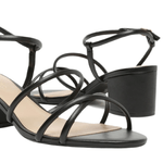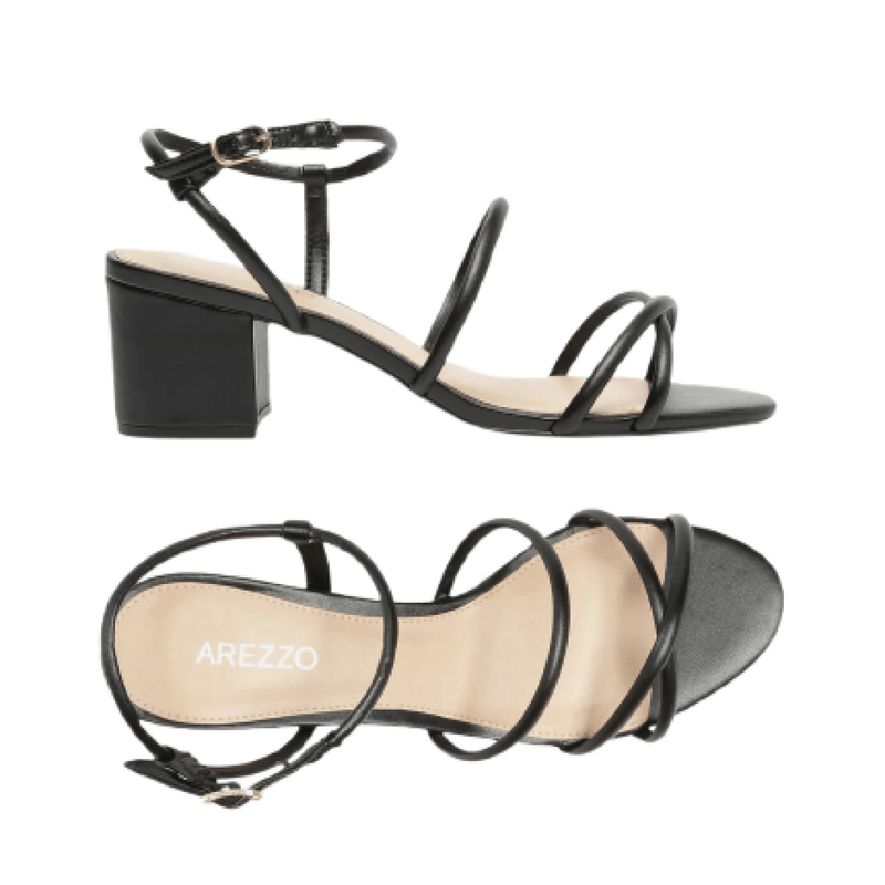 Sandalia femenina Arezzo en color negro, con tacón medio tipo bloque que brinda estabilidad y comodidad. Su diseño de tiras con hebilla aporta un ajuste seguro y un estilo clásico y versátil, ideal para el uso diario o para complementar looks casuales y elegantes.