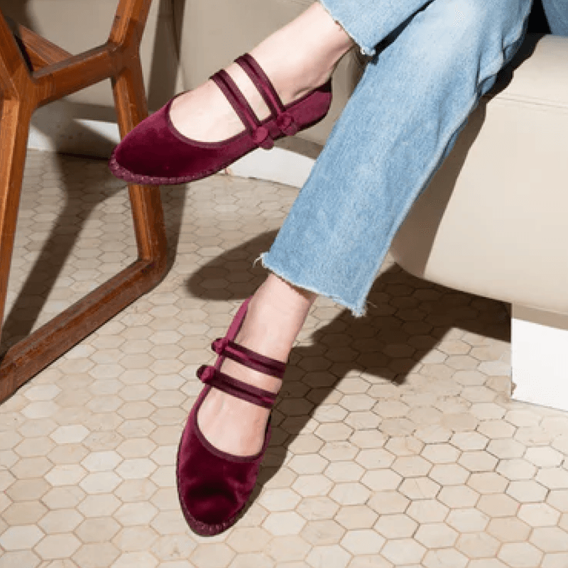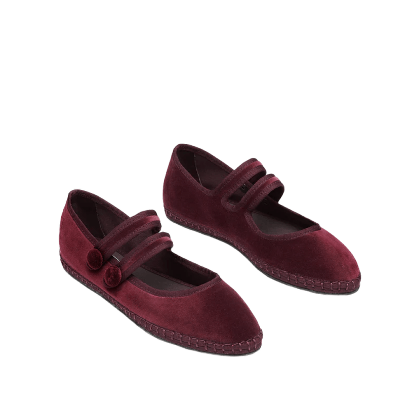 Zapato Antoine plano color burgundy con diseño elegante y acabado aterciopelado. Cómodo y perfecto para el día a día.