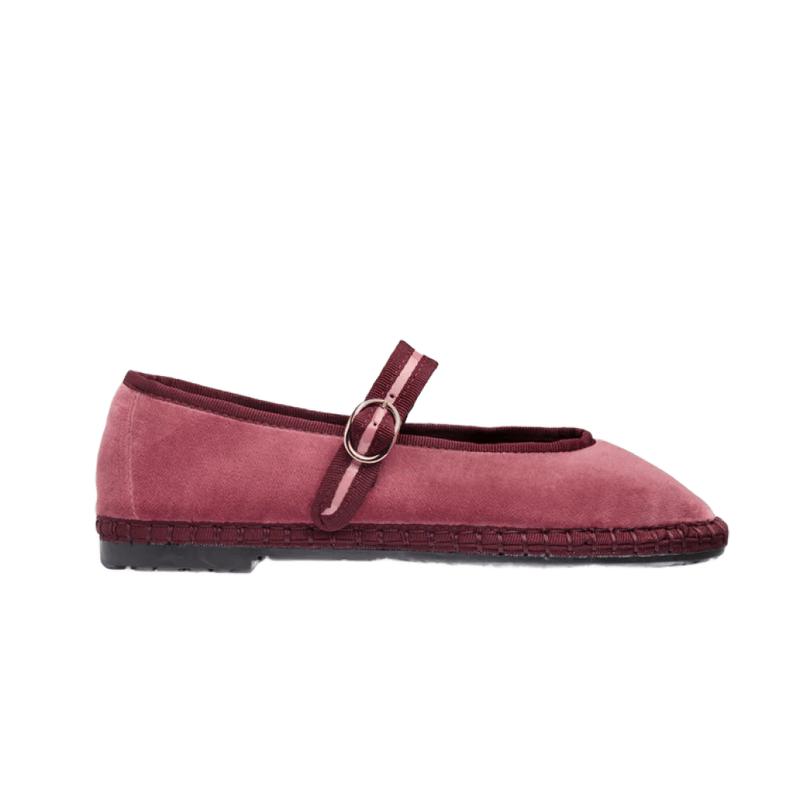 Zapatos estilo bailarina color burgundy de terciopelo con diseño sencillo y elegante. Cómoda y fácil de combinar para cualquier ocasión.