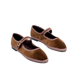 Zapatos Balthasar Mary Jane marrón de terciopelo con correa y hebilla. Diseño clásico, cómodo y muy femenino.