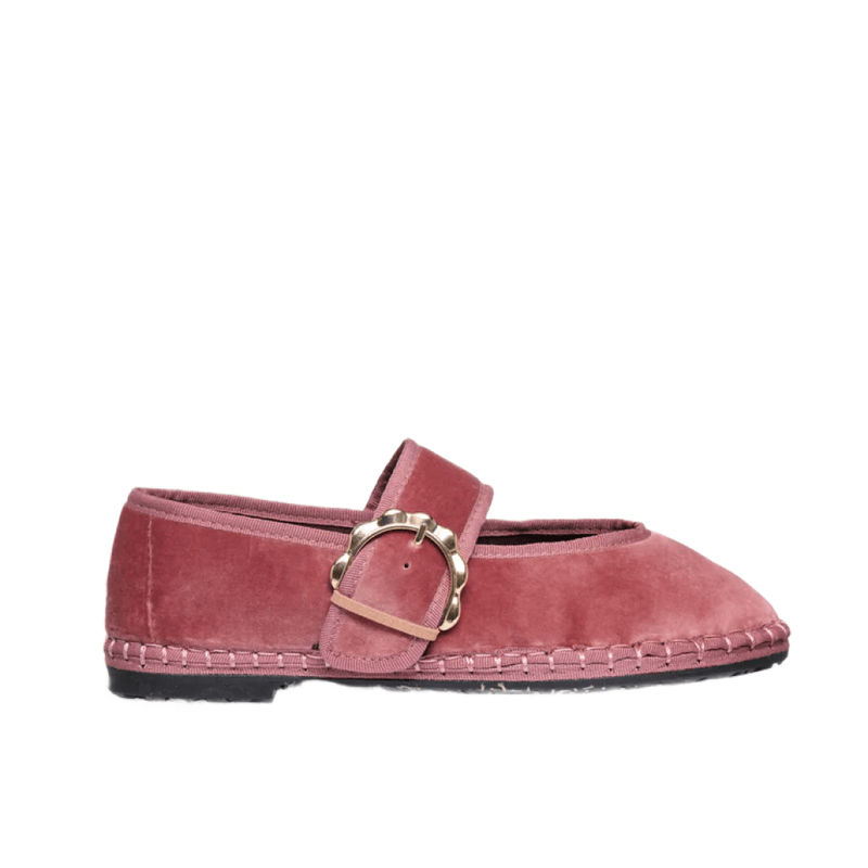 Bailarina rosa de terciopelo con diseño sencillo y femenino. Ligera, cómoda y perfecta para todos los días.
