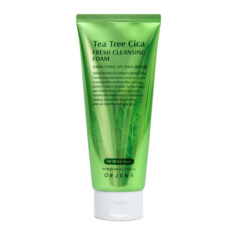 La espuma limpiadora Orjena Tea Tree Cica 180 ml limpia profundamente la piel mientras ayuda a controlar el exceso de grasa y eliminar impurezas sin resecar, gracias a su espuma suave y rica. Formulada con extracto de árbol de té y centella asiática, conocidos por sus propiedades calmantes y antibacterianas, ayuda a reducir la irritación, equilibrar la piel y mantenerla fresca y saludable. Ideal para todo tipo de piel, especialmente mixta o con tendencia acneica, deja el rostro limpio, suave y con una sensación de confort después de cada uso.