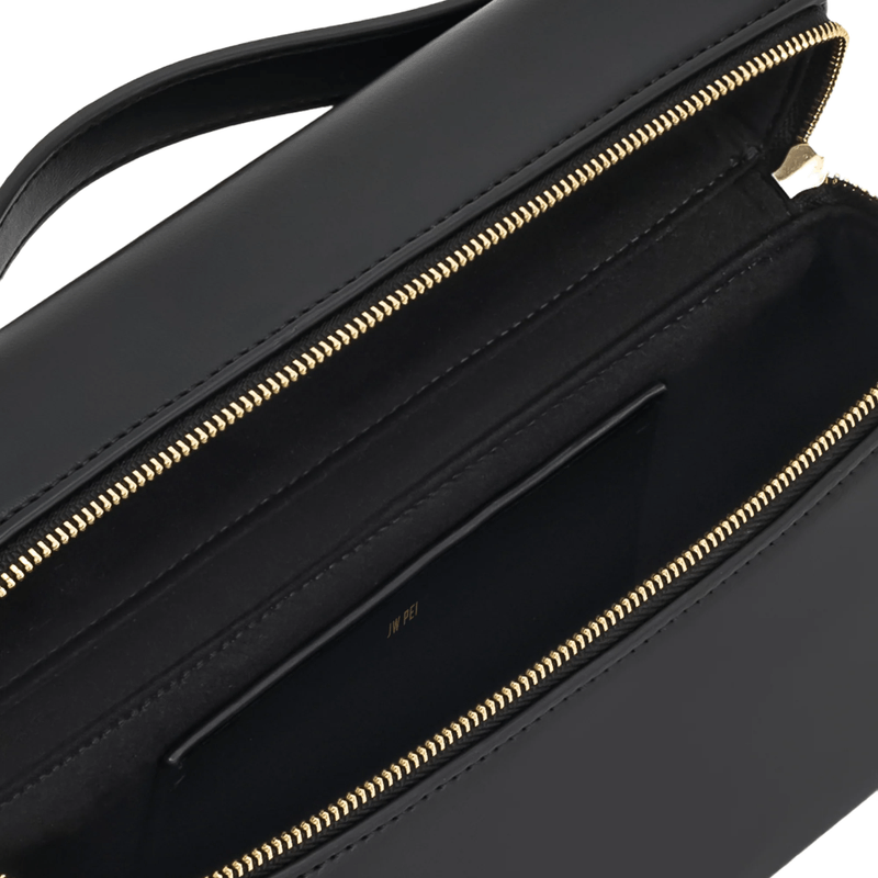 El Thea Top Handle Bag de JW PEI en negro es un bolso de asa superior con diseño limpio y elegante, confeccionado en cuero vegano resistente y de alta calidad. Su silueta estructurada y líneas minimalistas permiten llevarlo como bolso de mano o cruzado con correa removible, ideal para outfits de oficina o looks sofisticados. Perfecto para llevar tus esenciales con estilo y versatilidad.