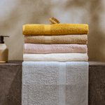 Elaboradas en 100% algodón, su tejido es tipo Terry, este se desarrolla a través de procesos de hilatura y trenzado.Las Toallas de alta calidad usualmente están hechas de fibra fina de algodón largo, que aportará propiedades como una mayor suavidad o absorción. Al ser 100% algodón, reparten el agua que absorben de manera natural por toda la prenda. Esto hace que sigan secando a pesar que la zona donde ya hemos absorbido el agua esté humedad