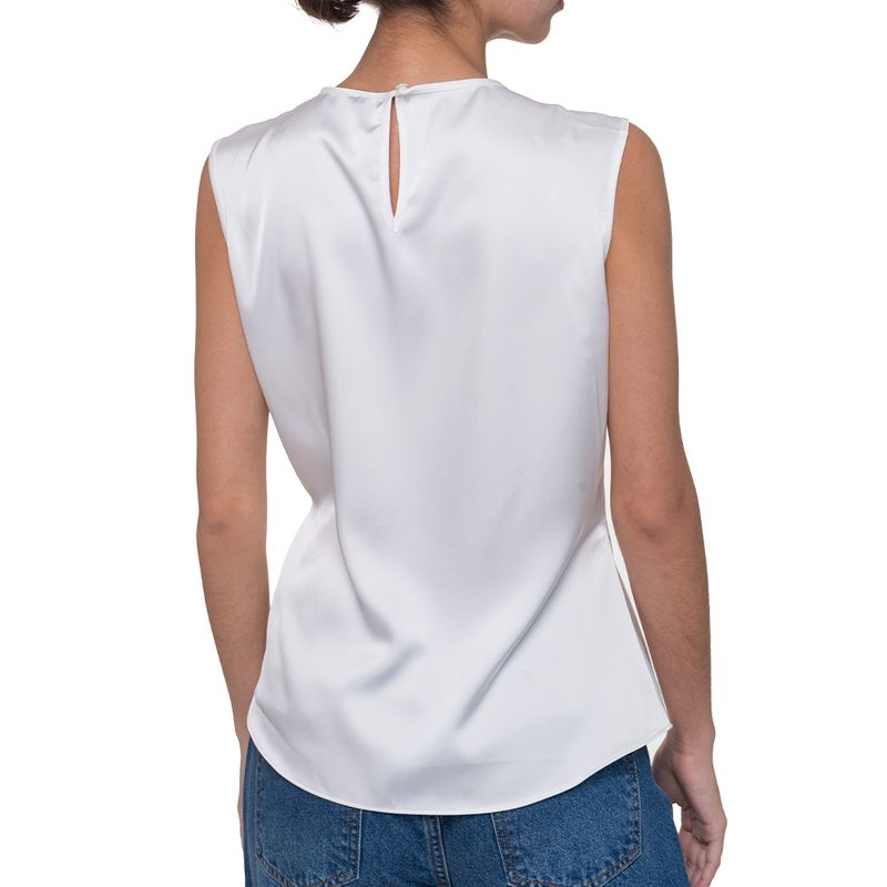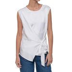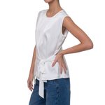 Top sin mangas con lazos – Diseño recto con pinzas verticales al frente. – Escote con abertura profunda y cierre de lazos. – Cuello redondo cerrado. – Tela de algodón con textura suave. – Corte a la cintura, ideal para looks relajados.