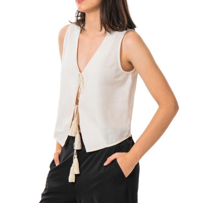 Top de diseño versátil con detalles suaves y delicados, perfecto para combinar y crear outfits casuales o chic.