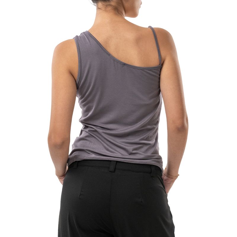 Top gris de tirantes, versátil y cómodo, ideal para combinar con distintas prendas de temporada.