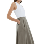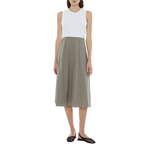 Vestido midi de escote redondo y sin mangas. Es un vestido que se han combinado dos tipos de tejidos, punto de canalé en el cuerpo y falda en popelin de algodón. Cierre con cremallera invisible lateral y bolsillos laterales. Regualr fit.