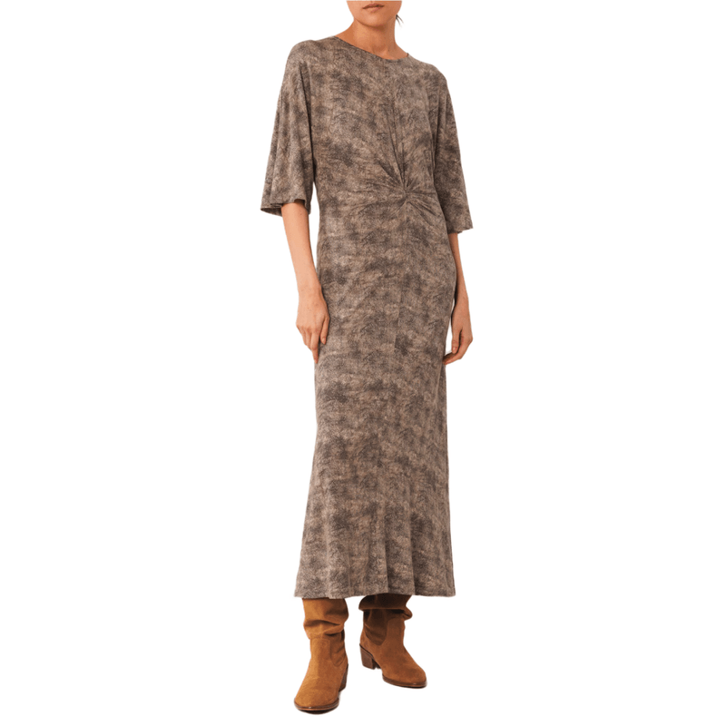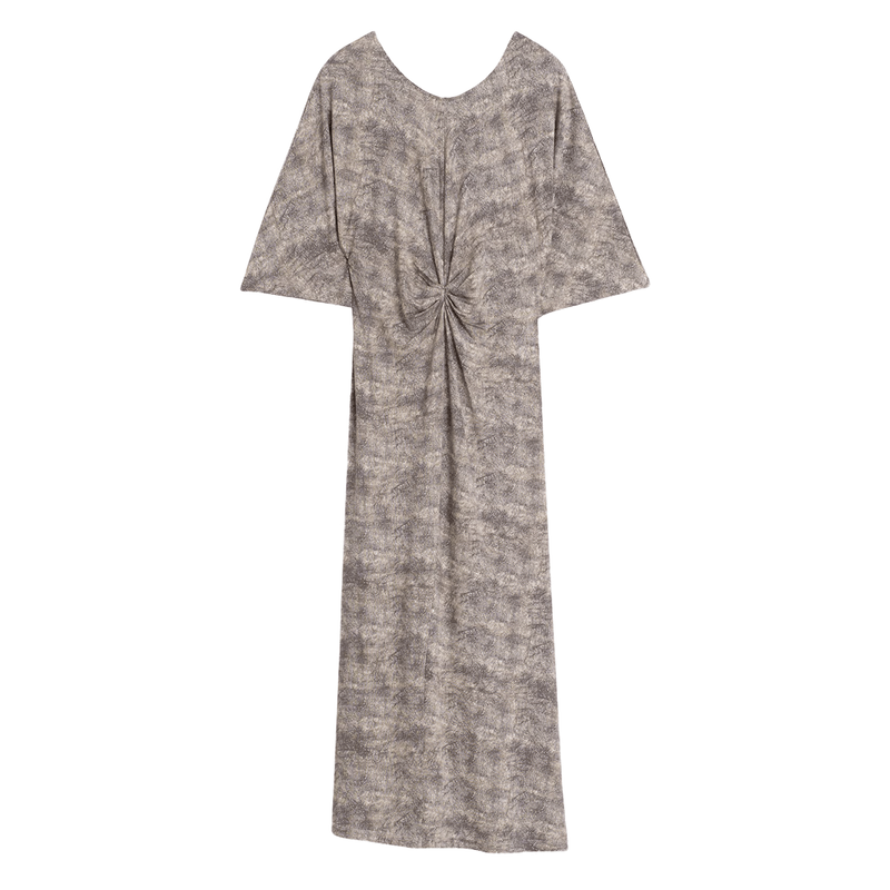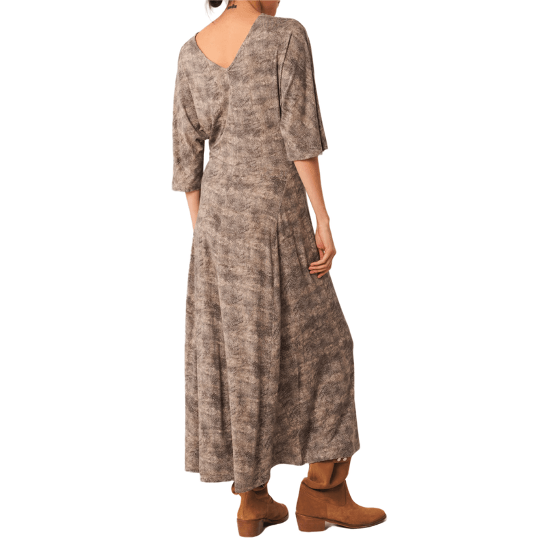 Vestido color carbón de tejido fluido y diseño elegante. Sofisticado y versátil para distintas ocasiones.