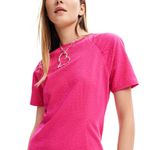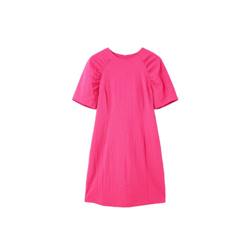Vestido corto de manga corta y cuello redondo en tejido con textura.