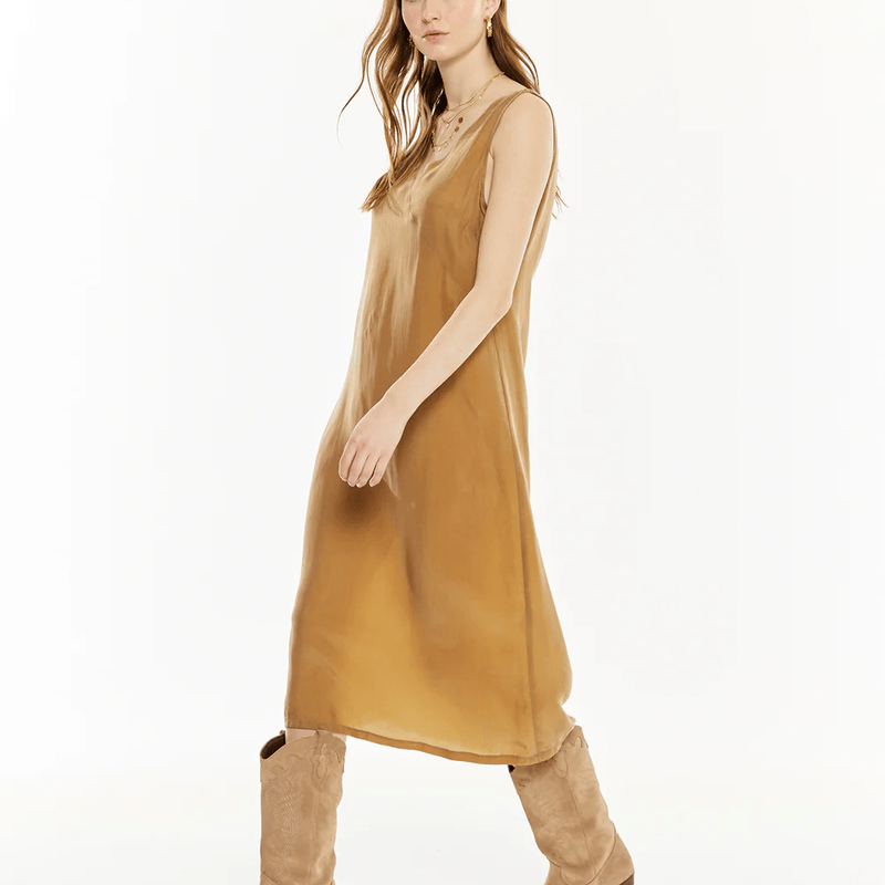 Vestido de tirantes largo Camel