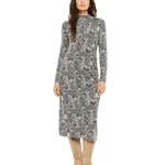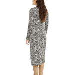 Vestido fluido con estampado sutil, diseñado para estilizar la figura sin esfuerzo. Perfecto para ocasiones especiales o para elevar un look diario.