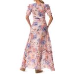 Vestido elaborado en chifon estampado floral, escote en V con detalle de mangas volumètricas
