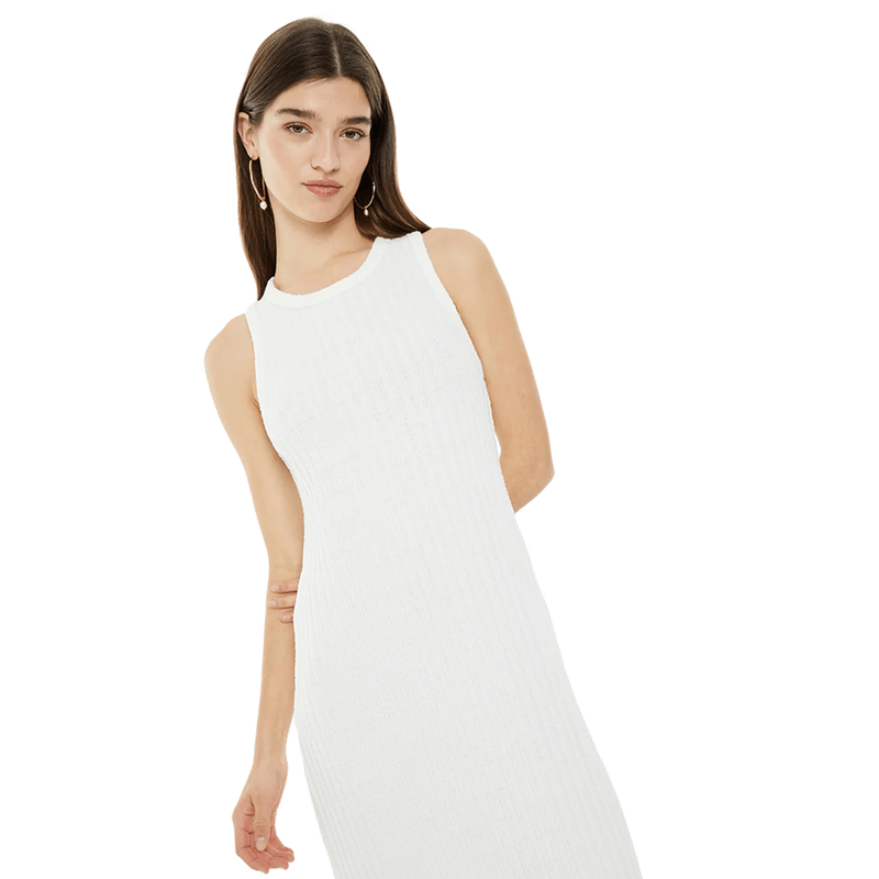 Vestido de mujer confort, talle midi, con escote redondo, de tirantes y detalle de abertura en el lateral. Prenda sostenible. Composición: Algodón 56%, Poliéster 41%, Elastano 3%