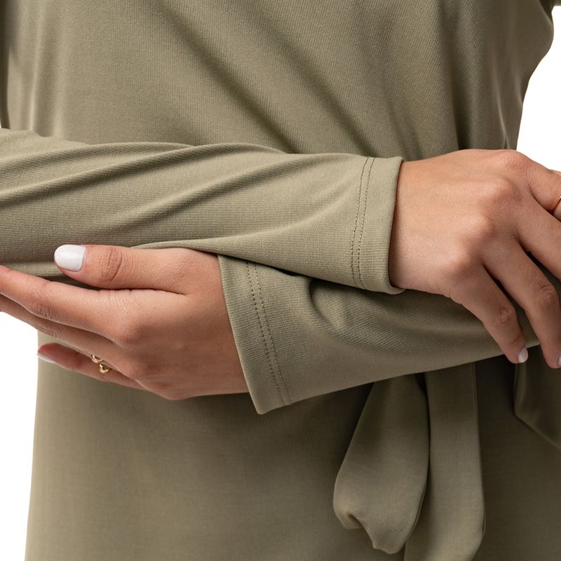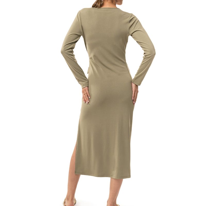 Vestido verde con detalle de nudo al frente. Combina frescura y elegancia en una prenda ideal para el día o la noche.