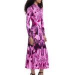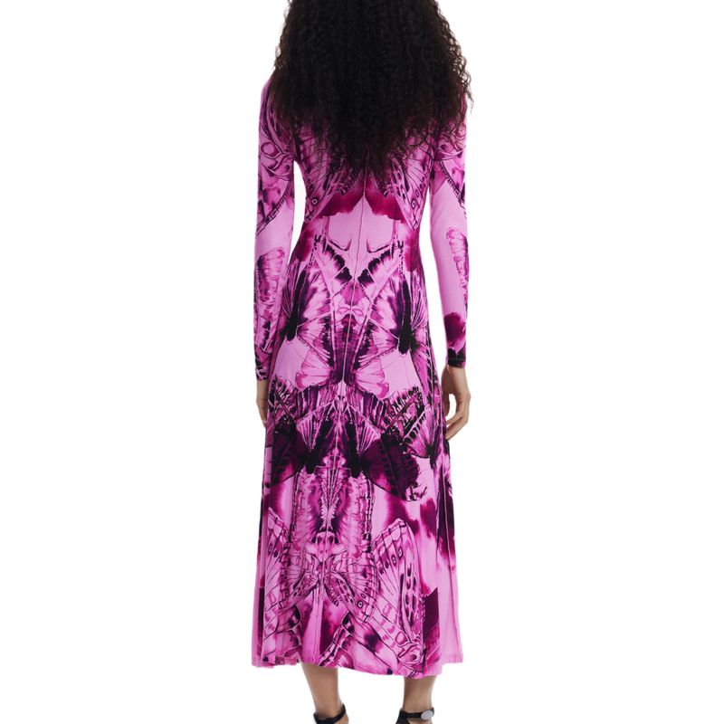 Vestido midi ajustado de fit slim, diseñado con manga larga y cuello turtleneck. Presenta un estampado de mariposas que agrega un toque distintivo al diseño elegante y estilizado.